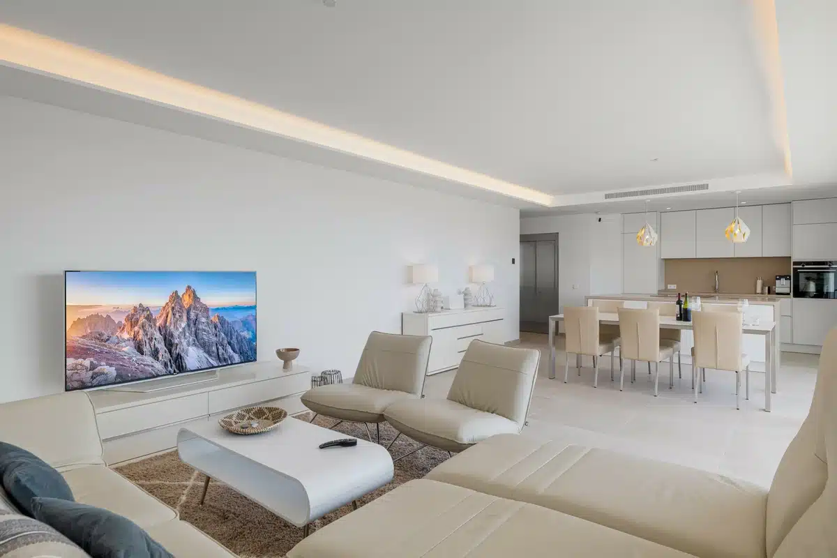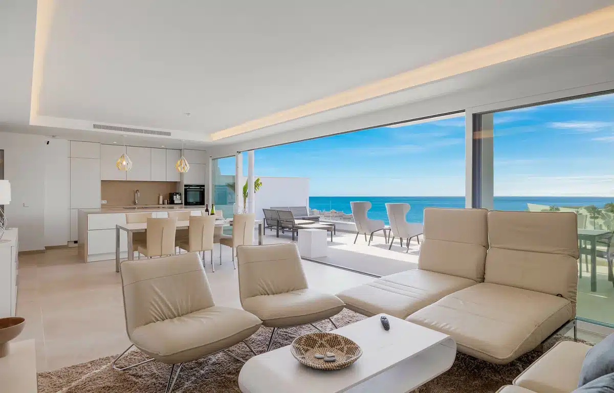 Step into this remarkable penthouse apartment and immerse yourself in awe-inspiring panoramic views of the sea. As you enter through the front door or your personal lift, prepare to be spellbound by the stunning vistas that unfold before you.