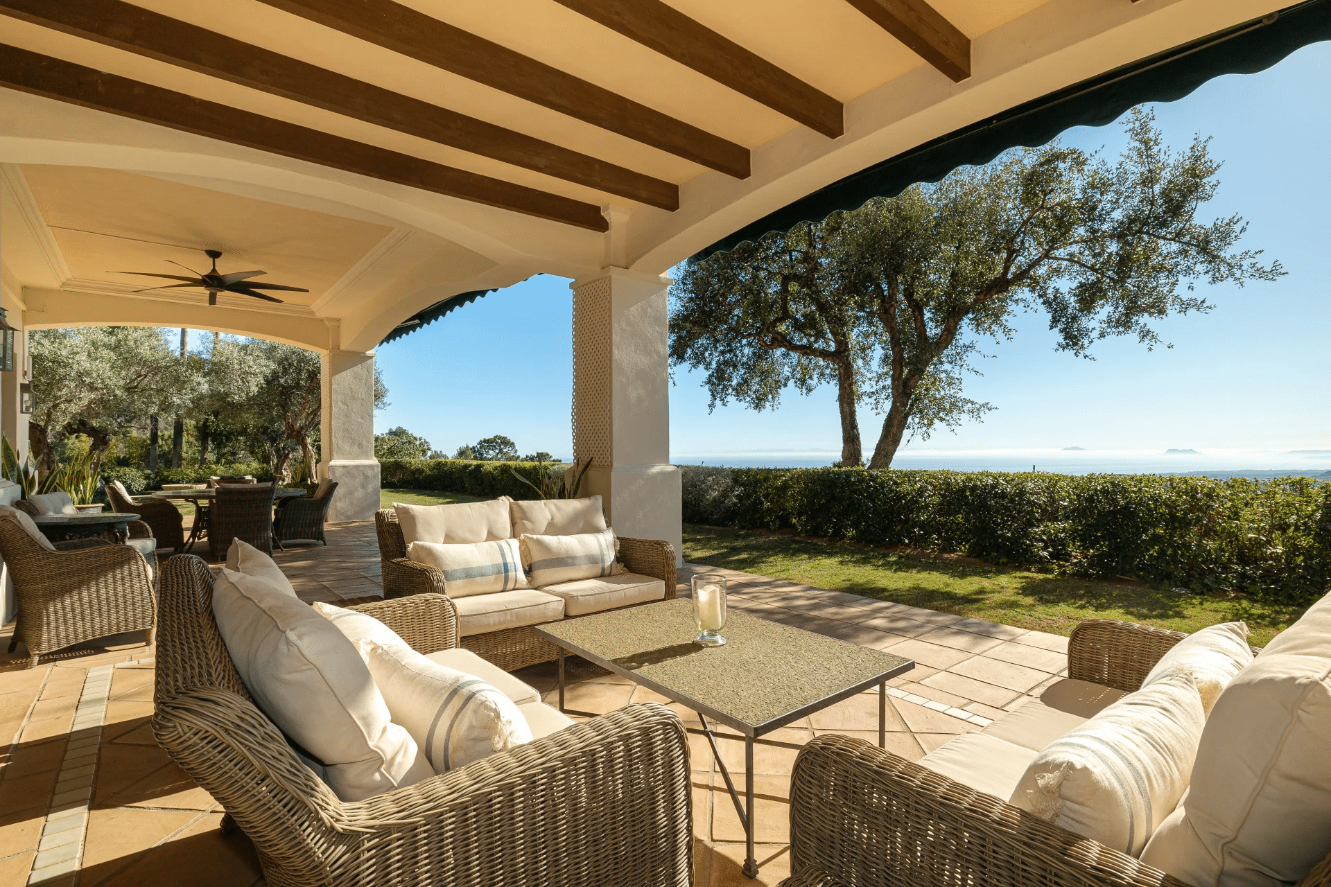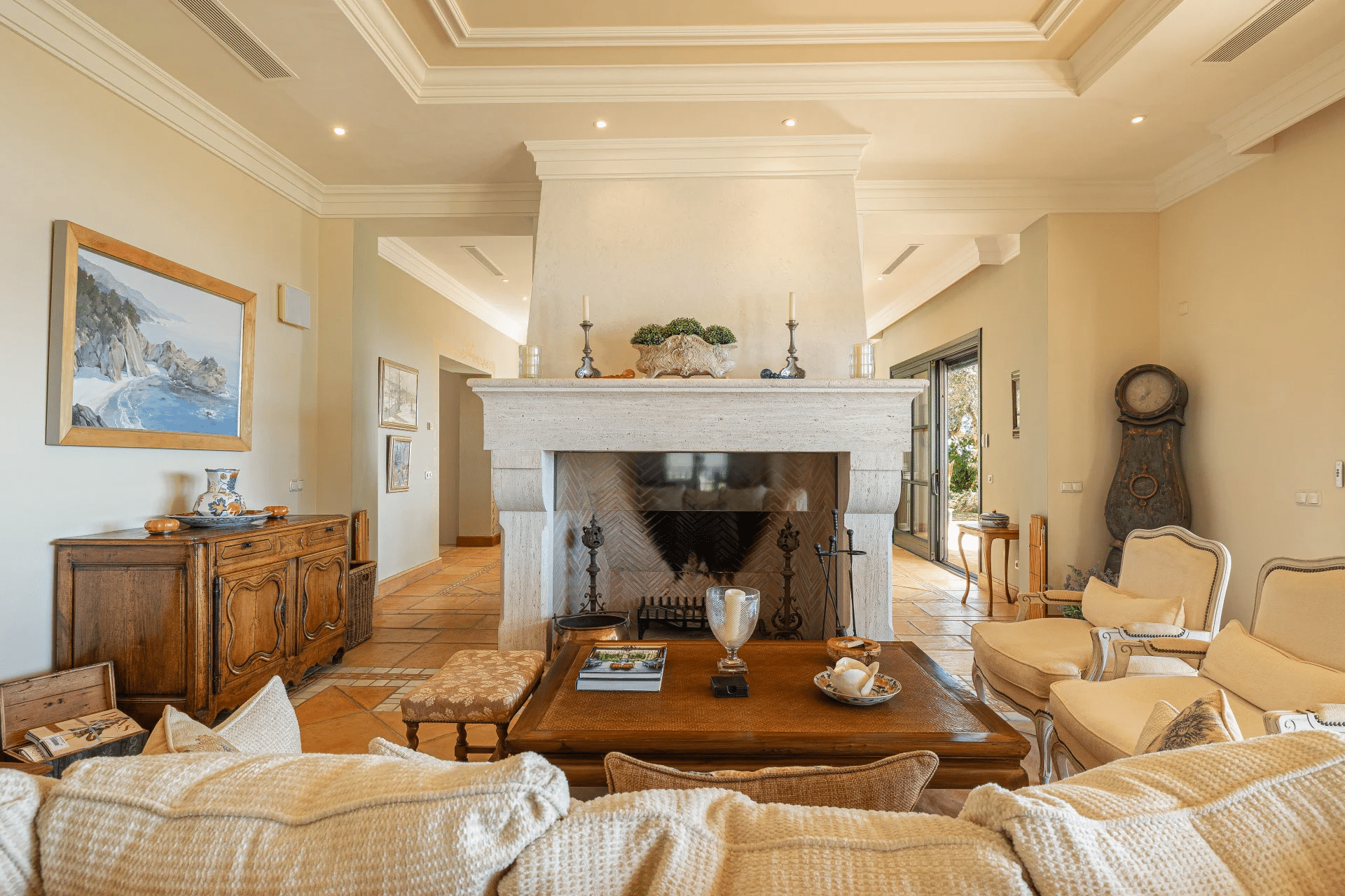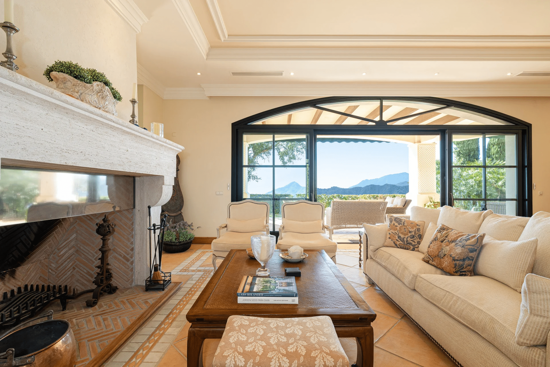 A stunning family home on one of the best plots in La Zagaleta, offering panoramic sea, golf, and mountain views. Completely private, with a beautiful driveway leading to the main entrance and a carport for 3 cars. The house is spread over 3 levels and features a very convenient and comfortable design. An impressive entrance hall leads to a bright and spacious formal living room that opens to a library or additional seating area with a fireplace, and then to a formal dining room with a fireplace and a stunning kitchen. All rooms have access to the terrace and garden with superb views. There is also a guest wing with 3 en-suite bedrooms on this level.