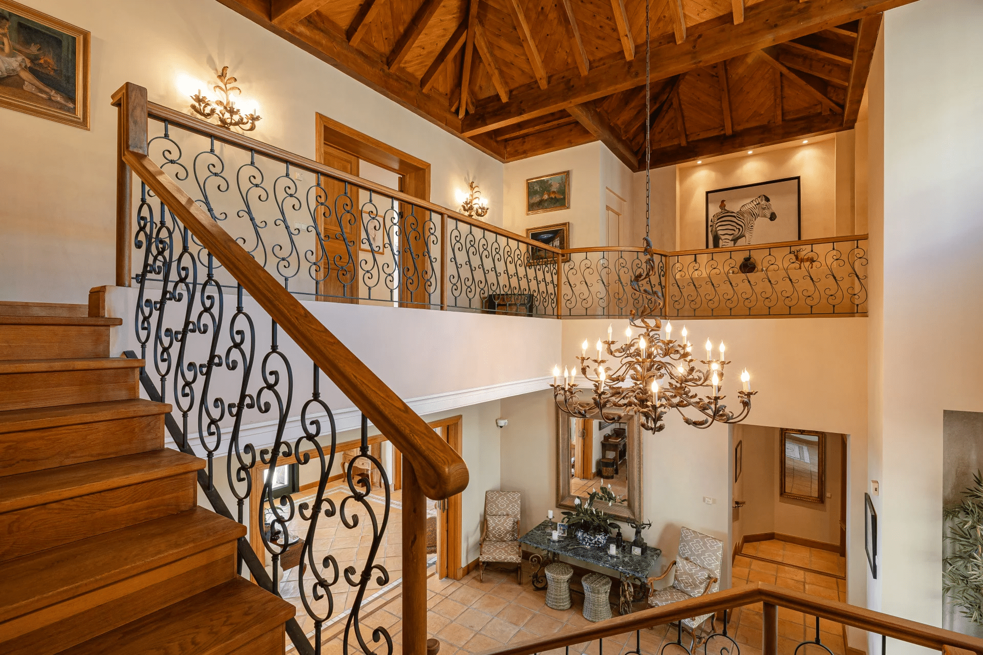 The enormous master en-suite bedroom with a private terrace and dressing room is on the upper level, along with a second en-suite bedroom, both with access to the terrace and incredible views. On the lower level, there is a games room, a wine cellar, a gym with a shower room and bathroom, and two en-suite bedrooms with access to the lower garden and pool area, staff quarters, and a garage for 2 or 3 cars. Built 20 years ago but impeccably kept and maintained. The house is located in one of the best sectors of La Zagaleta, making it unique in terms of views and proximity to the north entrance.