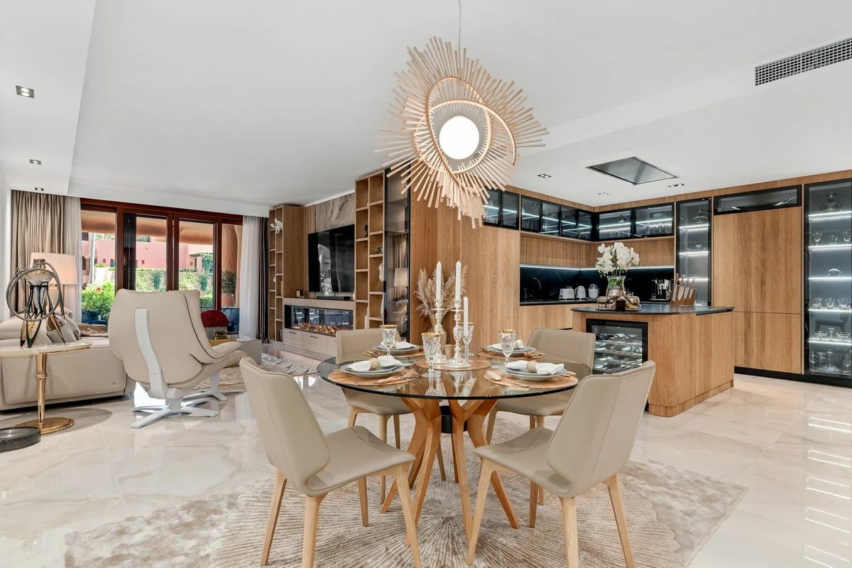 Just 100 meters from Guadalmansa Beach, this apartment opens onto a spacious hall leading to a fully equipped kitchen and a bright and elegant living-dining room, ideal for entertaining. It features three bedrooms, two of them with a full en-suite bathroom and dressing room, plus a separate bathroom.