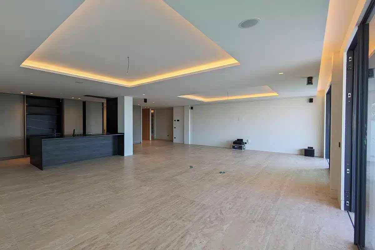 Luxurious four bedroom middlefloor apartment for sale in this exclusive seafront resort offers a contemporary design, ample interior spaces with views out into the Mediterranean through enormous windows, and extensive terraces with private pools. The use of high-quality materials and cutting-edge technology make this development a real gem. All the homes come with at least two large garage spaces and one storeroom.