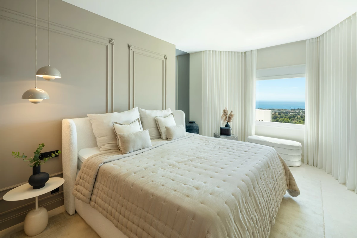 This luxury renovated penthouse for sale in Jardines Colgantes offers a rare opportunity to acquire a modern Mediterranean home in one of Marbella’s most prestigious residential enclaves. Designed for discerning buyers who value both architectural quality and a serene lifestyle, this duplex penthouse combines contemporary sophistication with timeless elegance. Panoramic sea views and a privileged hillside setting create the perfect backdrop for refined living in Marbella Hill Club, one of the most sought-after areas above the Golden Mile.