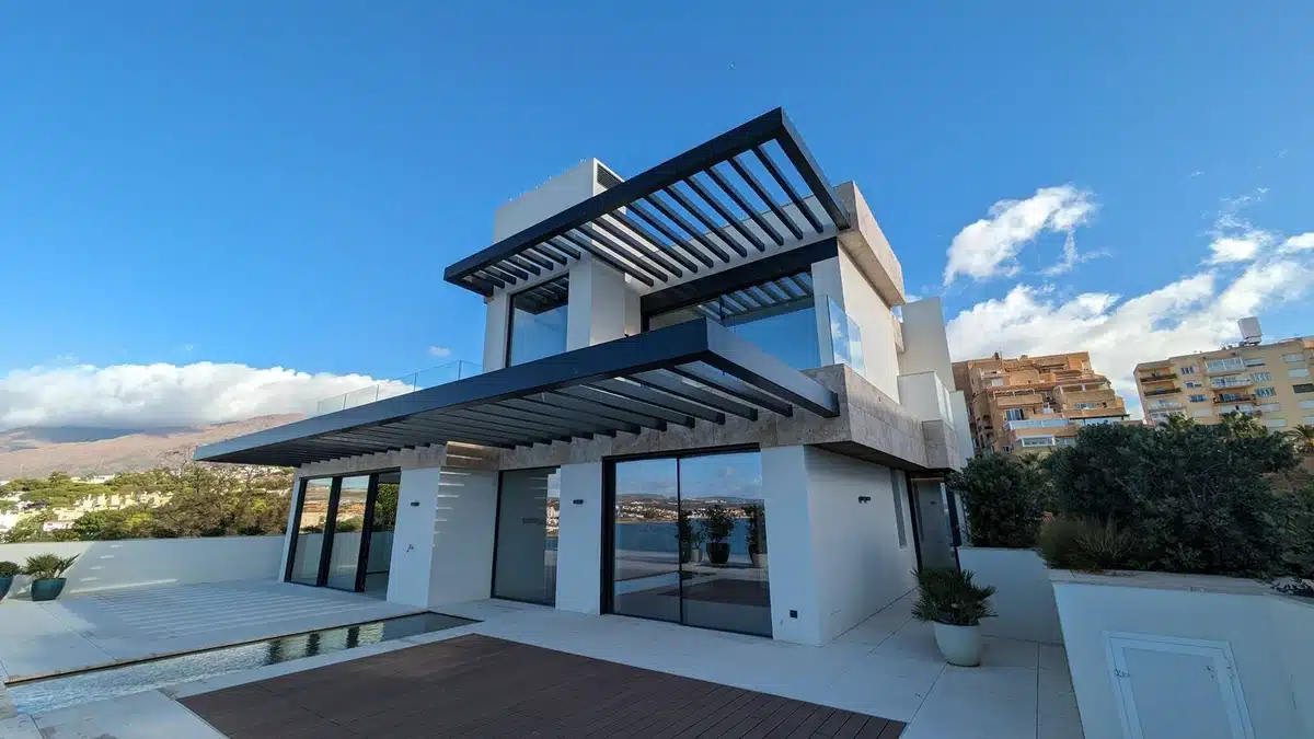 Luxurious three bedroom penthouse duplex for sale in this exclusive seafront resort offers a contemporary design, ample interior spaces with views out into the Mediterranean through enormous windows, and extensive terraces with private pools. The use of high-quality materials and cutting-edge technology make this development a real gem. All the homes come with at least two large garage spaces and one storeroom.