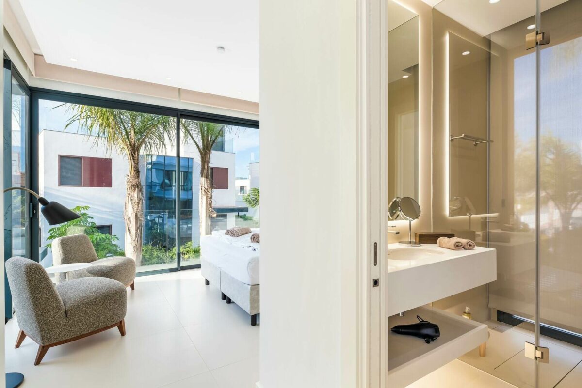 This 4 bedroom beach side luxury house was constructed in 2022 with a lot of attention to detail and benefits from luxury throughout. With its proximity and walking distance to Puerto Banus, it is ideally located for a vacation within the Marbella area. The local Diamond Beach is easily accessable on foot. Banus.