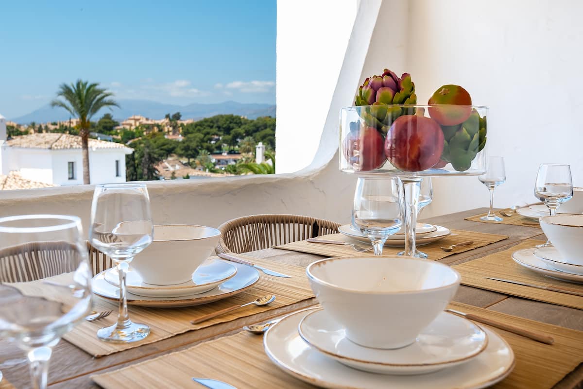 In this stunning duplex penthouse in Marbella situated in the highly sought-after neighborhood of Nueva Andalucia, you will be walking up in a recently refurbished property and a complex with peaceful exotic gardens just 10 minutes walking away from the famous marina of Puerto Banus and 2 minutes walking to the most popular restaurants and bars. Stay here if you are looking for a restful and luxurious holiday base in Marbella’s most popular area that ticks all those practical boxes: four ample communal pools surrounded by pretty plants (open all year around), 24-hour security, and exclusive guest services.