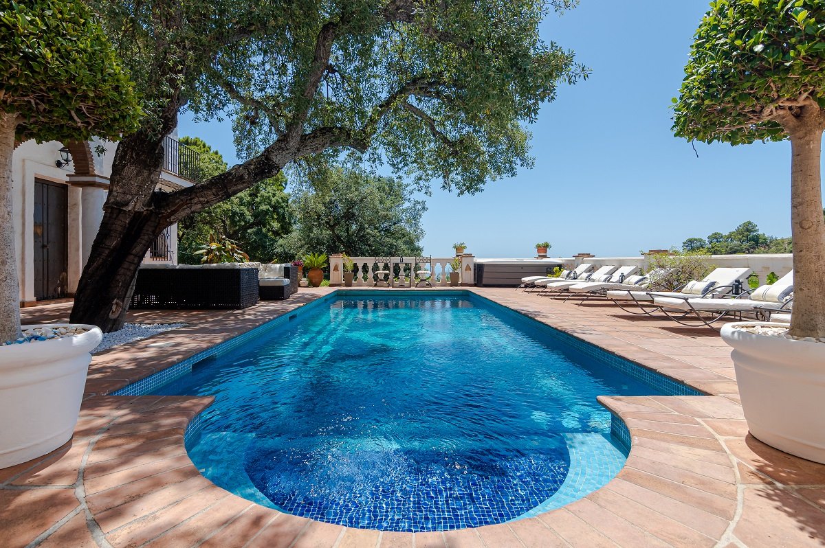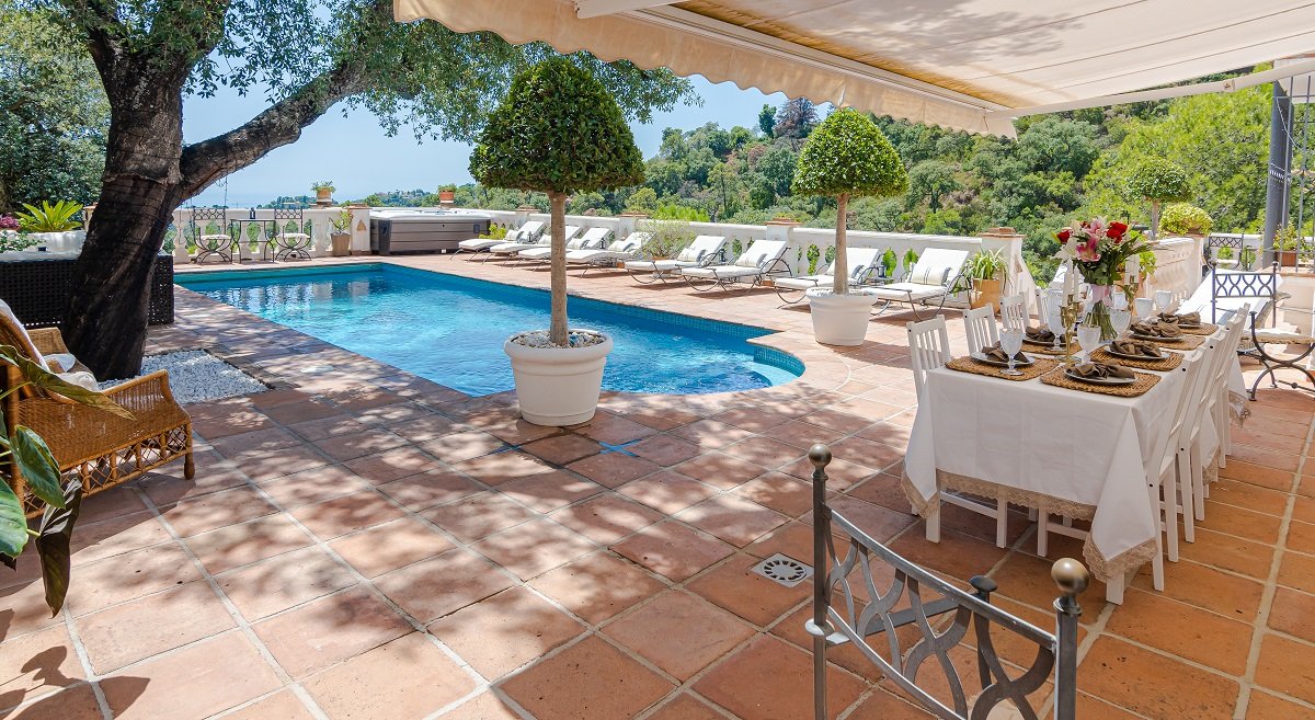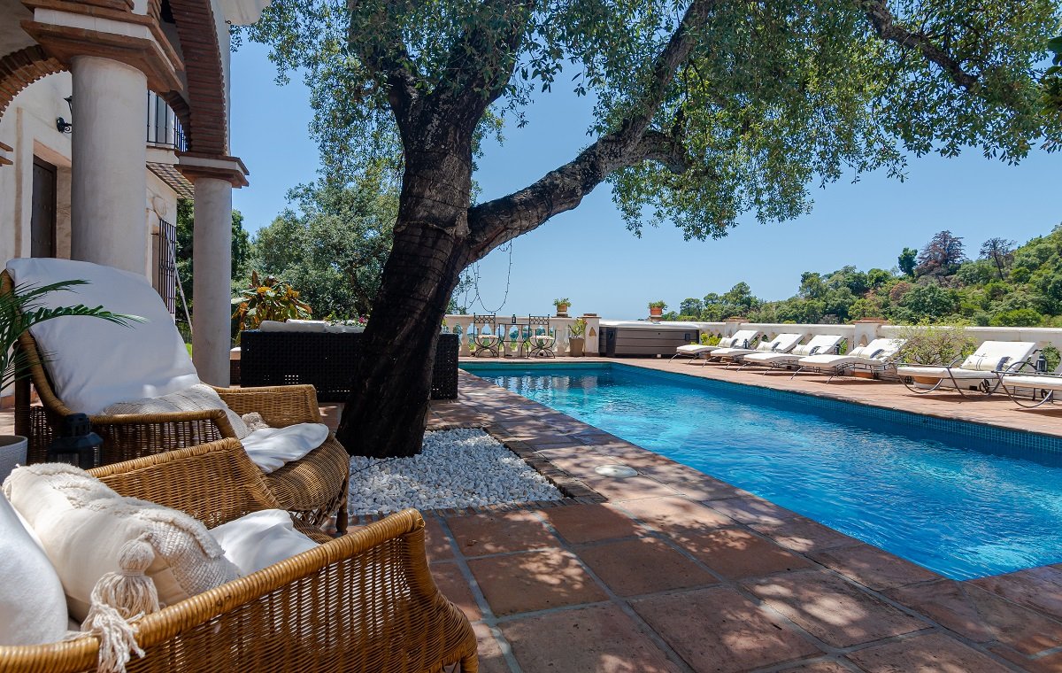 El Madroñal – 6 bedroom traditional villa is set on alarge plot with a mature tropical garden. There is a large outdoor terrace around the swimming pool where you can enjoy easy outdoor living just outside the kitchen and dining area.