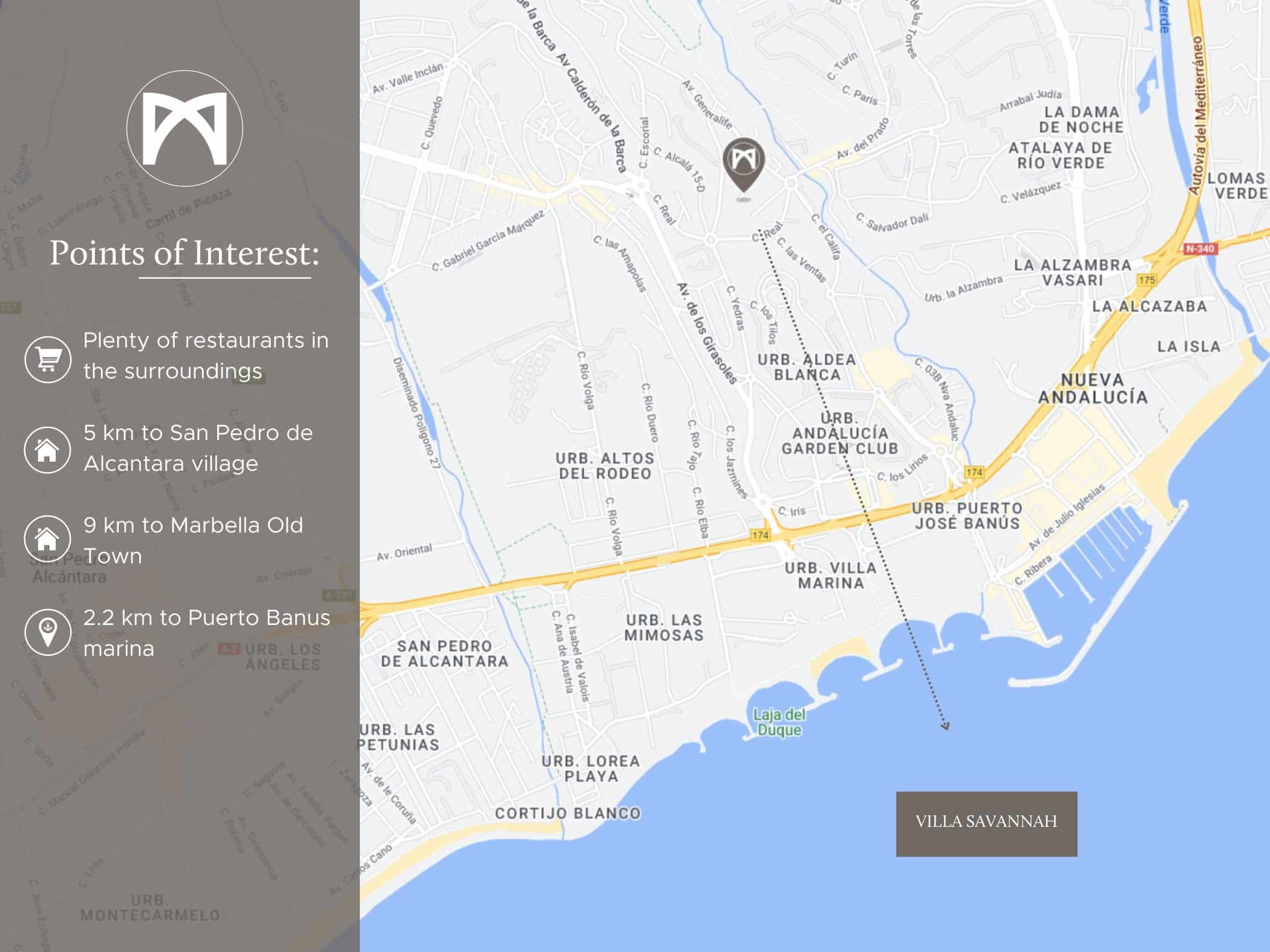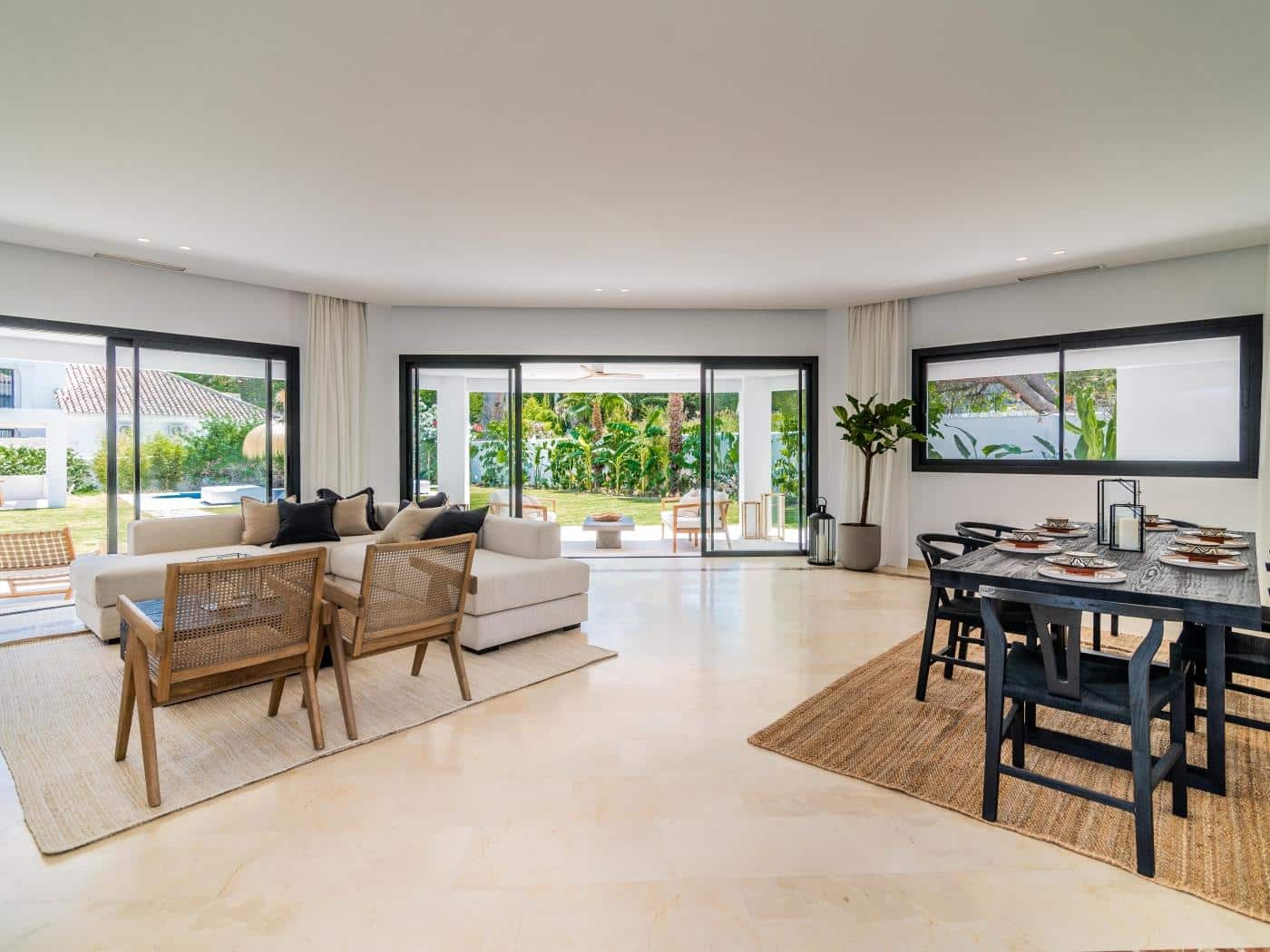 Located in Nueva Andalucia, well known as the golf valley of Marbella, this villa is located in a very quiet area at the end of an alley in a cul-de-sac. The area is near all sorts of attractions including the beach which is 5 minutes away, and the unique marina of Puerto Banus.